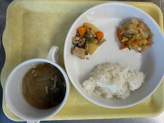 9月18日(木) 今日の給食 2025 9/19 びさいの給食 2025年9月19日 ★昼食★ ・玄米ごはん ・炒り鶏 ・きゅうりのキャベツのごま和え ・みそ汁(玉ねぎ、えのき、オクラ、青ネギ) ★午後間食★ ・肉まん蒸しパン ー (幼児移行食) (3歳未満児) (午後間食) びさいの給食 9月17日(水) 今日の給食 もうすぐ運動会!!