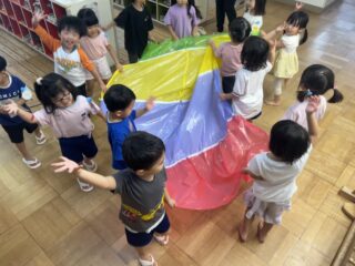 年少ちゅうりっぷぐみでは、初めてのパラバルーン演技が楽しかったようです‼︎パラバルーンを作り運動会の余韻に浸っています♪
