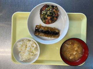 9月24日(水) 今日の給食 2025 10/07 びさいの給食 2025年10月7日 ★昼食★ ・もちきびごはん ・さんまのかば焼き ・トマトとオクラのおかか和え ・みそ汁 ★午後間食★ ・おむすび(塩昆布) _ (幼児移行食) (3歳未満児) (3歳以上児) びさいの給食 9月22日(月) 今日の給食 9月29日(月) 今日の給食