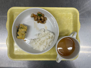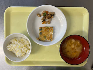 9月30日(火) 今日の給食 2025 10/07 びさいの給食 2025年10月7日 ★昼食★ ・もちきびごはん ・千草焼き ・大豆の五目煮 ・みそ汁 ★午後間食★ ・焼きうどん _ (幼児移行食) (3歳未満児) (3歳以上児) (午後間食) びさいの給食 9月29日(月) 今日の給食 10月1日(水) 今日の給食