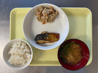 10月7日(火) 今日の給食 2025 10/07 びさいの給食 2025年10月7日 ★昼食★ ・もちあわごはん ・さばのカレー焼き ・うの花煮 ・みそ汁 ★午後間食★ ・さつまいもとりんごのケーキ _ (幼児移行食) (3歳未満児) (3歳以上児) (午後間食) びさいの給食 10月6日(月) 今日の給食 10月8日(水) 今日の給食