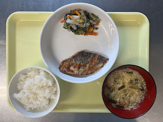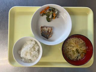 10月14日(火) 今日の給食 2025 10/16 びさいの給食 2025年10月16日 ★昼食★ ・ごはん ・さわらのごまみそ焼き ・キャベツのゆかり和え ・かきたま汁 ★午後間食★ ・豚汁うどん _ (幼児移行食) (3歳未満児) (3歳以上児) (午後間食) びさいの給食 秋の徒歩遠足 10月15日(水) 今日の給食