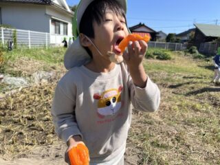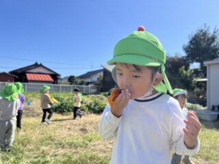 収穫後は、園庭で穫れた柿を美味しくいただきました♡外で食べる穫れたての柿は、とっても美味しかったです‼︎