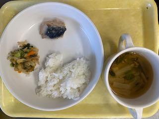 11月4日(火) 今日の給食 2025 11/06 びさいの給食 2025年11月6日 ★昼食★ ・ごはん ・さばのみそ煮 ・白菜のおかか和え ・すまし汁 ★午後間食★ ・のりじゃが _ (幼児移行食) (3歳未満児) (3歳以上児) (午後間食) びさいの給食 おいもほりをしたよ‼︎ 11月5日(水) 今日の給食