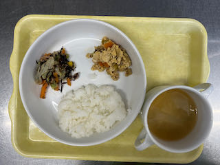 11月11日(火) 今日の給食 2025 11/11 びさいの給食 2025年11月11日 ★昼食★ ・もちきびごはん ・炒り豆腐 ・ひじきのごま酢和え ・みそ汁(大根、もやし、白ネギ、わかめ) ★午後間食★ ・スイートポテト ー (幼児移行食) (3歳未満児) (3歳以上児) (午後間食) びさいの給食 11月10日(月) 今日の給食 11月12日(水) 今日の給食
