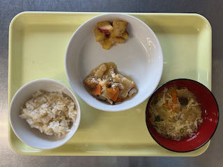 11月12日(水) 今日の給食 2025 11/13 びさいの給食 2025年11月13日 ★昼食★ ・玄米ごはん ・厚揚げの中華煮 ・さつまいものごま和え ・かきたま汁(キャベツ、しめじ、人参、青ネギ、卵) ★午後間食★ ・おむすび(鮭・のり) ー (幼児移行食) (3歳未満児) (3歳以上児) (午後間食) びさいの給食 11月11日(火) 今日の給食 11月13日(木) 今日の給食