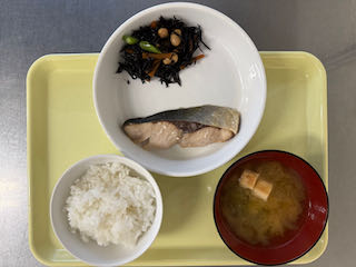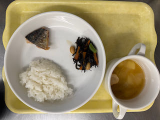 1月5日(月) 今日の給食 2026 1/07 びさいの給食 2026年1月7日 ★昼食★ ・ごはん ・あじの塩焼き ・ひじきの煮物 ・みそ汁 ★午後間食★ ・さつまいも蒸しパン _ (幼児移行食) (3歳未満児) (3歳以上児) (午後間食) びさいの給食 12月25日(木) 今日の給食