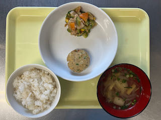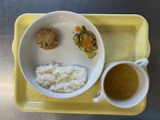 1月8日(木) 今日の給食 2026 1/21 びさいの給食 2026年1月21日 ★昼食★ ・麦ごはん ・あじのつくねカレー焼き ・れんこんときゅうりのごま酢和え ・すまし汁(玉ねぎ、豆腐、えのき、青ネギ) ★午後間食★ ・おむすび(白ネギ・しらす) ー (幼児移行食) (3歳未満児) (3歳以上児) びさいの給食 1月5日(月) 今日の給食 1月13日(火) 今日の給食