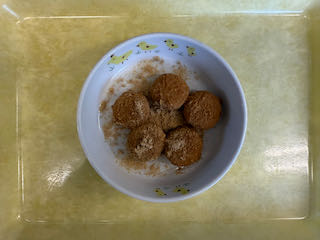 1月22日(木) 今日の給食 2026 2/03 びさいの給食 2026年2月3日 ★昼食★ ・玄米ごはん ・いわしのかば焼き ・春雨の華風和え ・みそ汁 ★午後間食★ ・きなこ白玉 _ (幼児移行食) (3歳未満児) (午後間食) びさいの給食 1月21日(水) 今日の給食 1月26日(月) 今日の給食