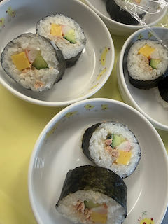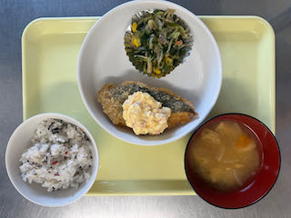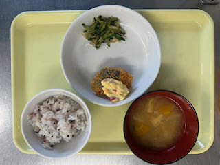 2月3日(火) 今日の給食 2026 2/03 びさいの給食 2026年2月3日 ★昼食★ ・ひじきごはん ・サーモンフライ(らっきょうタルタル) ・きゅうりとわかめの酢の物 ・みそ汁 ★午後間食★ ・のり巻き _ (幼児移行食) (3歳未満児) (3歳以上児) (午後間食) びさいの給食 2月2日(月) 今日の給食