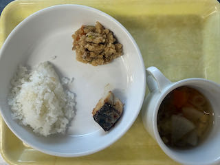 2月26日(木) 今日の給食 2026 3/05 びさいの給食 2026年3月5日 ★昼食★ ・ごはん ・さわらのごまみそ焼き ・うの花煮 ・けんちん汁 ★午後間食★ ・ポテト _ (幼児移行食) (3歳未満児) (3歳以上児) (午後間食) びさいの給食 2月25日(水) 今日の給食 3月2日(月) 今日の給食